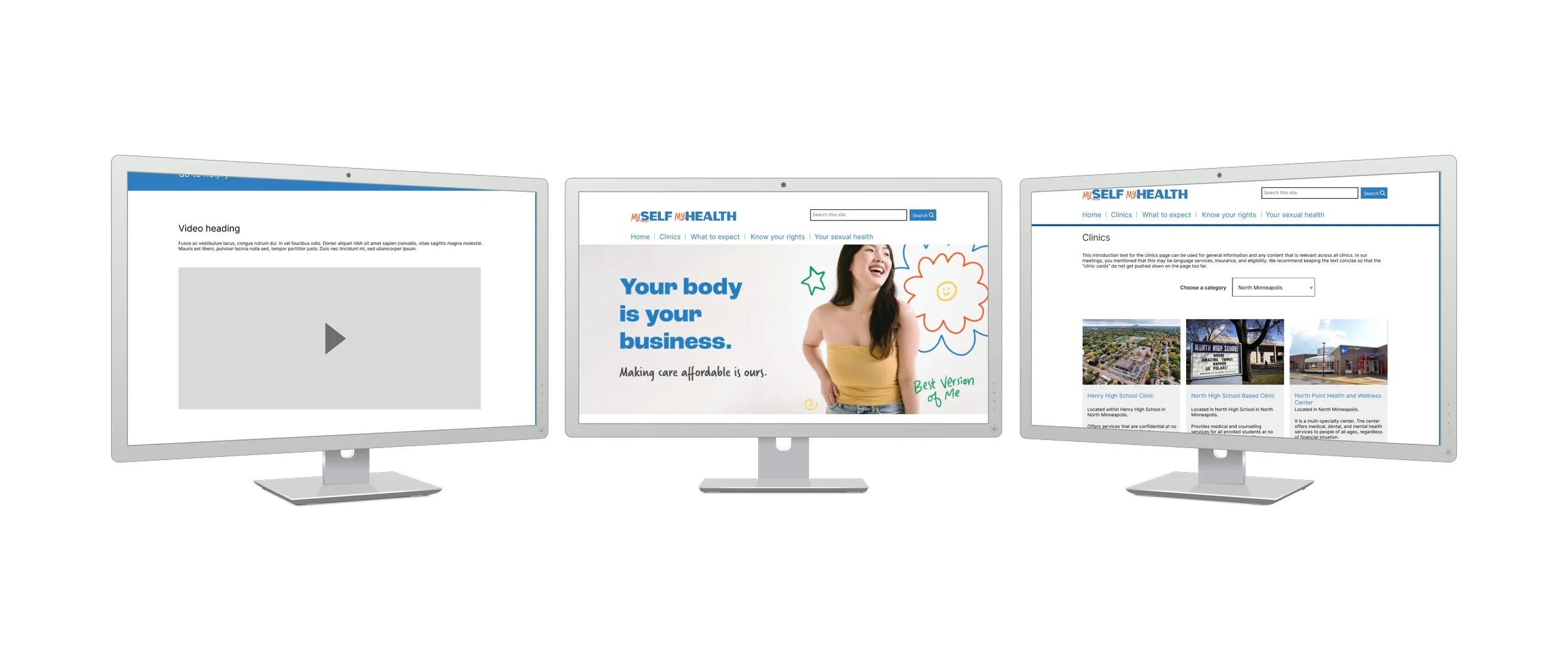 Primary designer for the MySelf MyHealth website at Hennepin County. My role for this website was to bridge the gap between users and website as a tool that teens can come to in need of help with resources for trusted, affordable sexual health clinics.