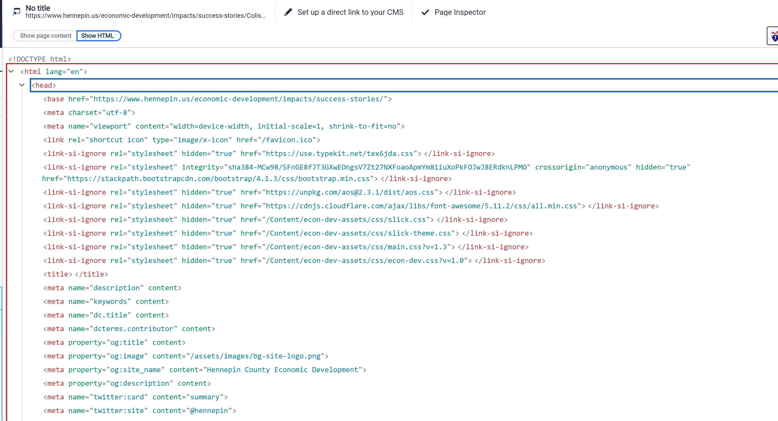 When SiteImprove would flag our sites for Accessibility issues, my role was to investigate why certain webpages were being flagged. Through the use of my HTML and CSS skills, I was able to locate errors in front-end code. These are a few screenshots of object tags and title tags that remained empty, but where still being uploaded to our external sites. These are issues in accessibility because it can cause issues to screen readers, SEO and more.